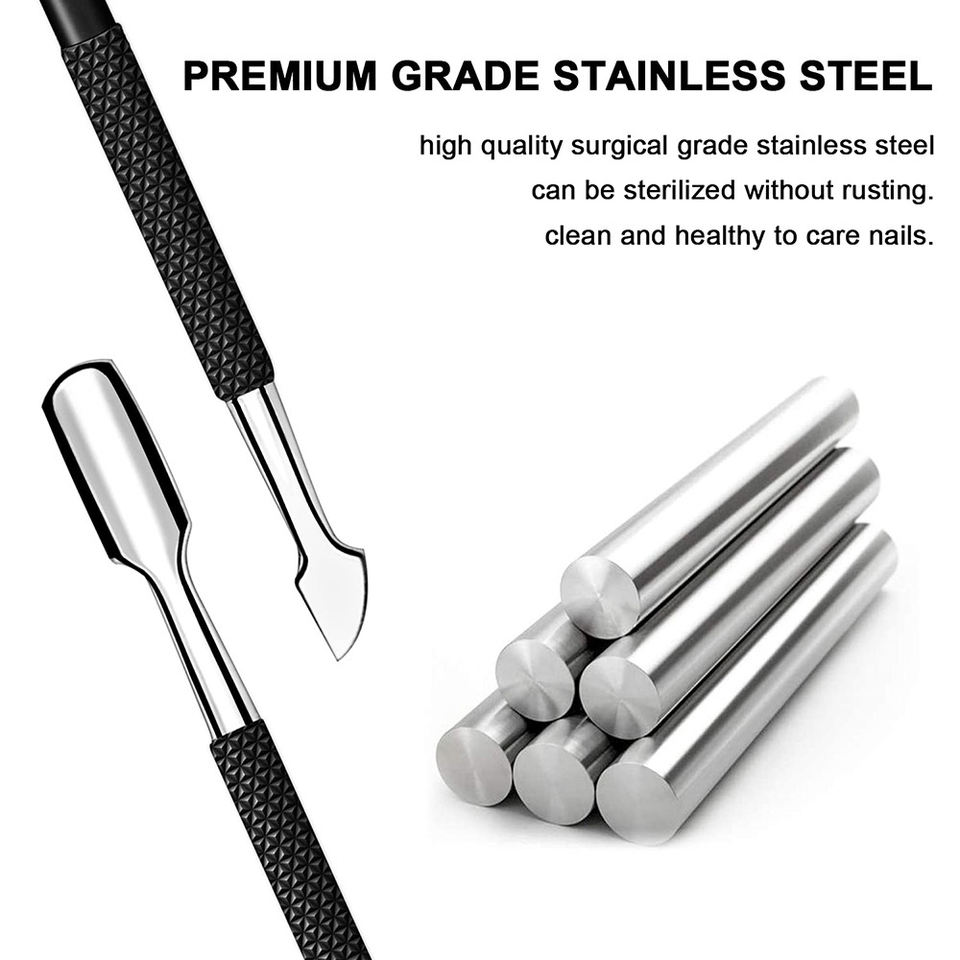 2024 Black Stainless Steel Manicure Nail Pusher Gel Nail Polish Remover Tool for Cleaning Cuticles