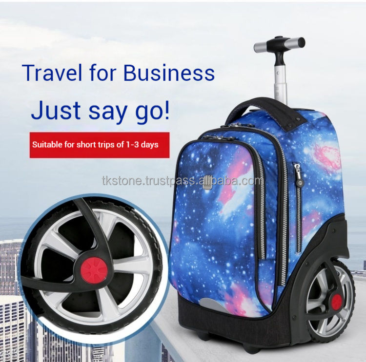 2024 Cartoon Sports Style Waterproof Oxford Trolley Backpack Durable Business Travel School Storage Features Water Luggage