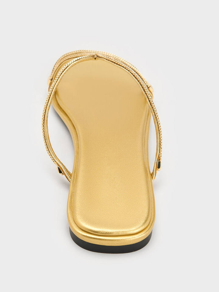 2024 Casual Women's Fancy Silver Flat Sandals With High Heel Fashion Toe Golden Sleepers Thick Sole Simple Diamond Straps Party