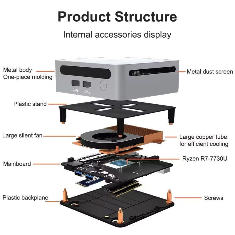 2024 Cost-effective Gaming Mini Pc CPU AMD R7 7730U DDR4 32GB M.2 1TB WIFI6+Bluetooth 5.2 Mini Host Game Design R7 7730U Mini PC