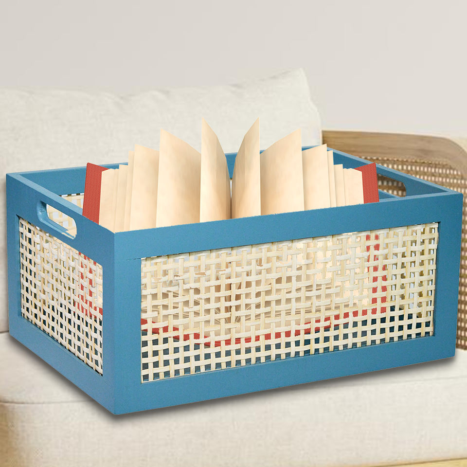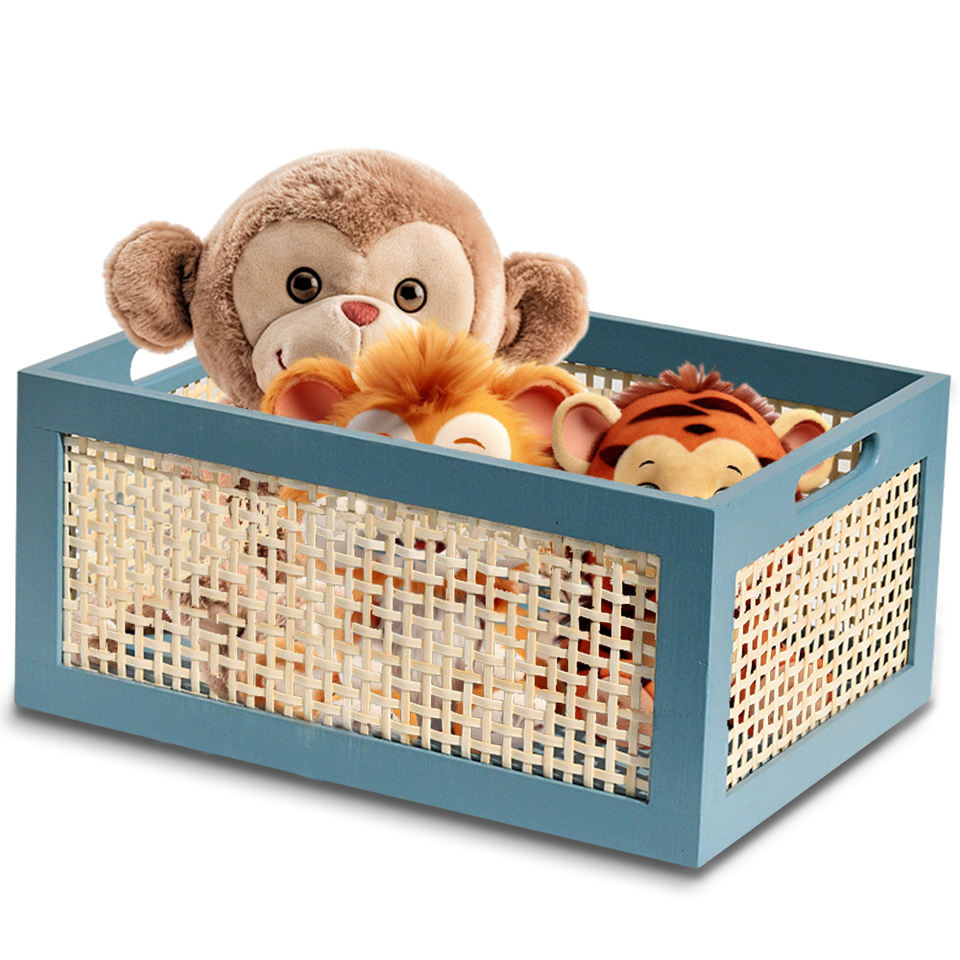 2024 Creative Natural Bamboo Storage Bin Faux Rattan Frame Wicker Storage Baskets with Handles Blue