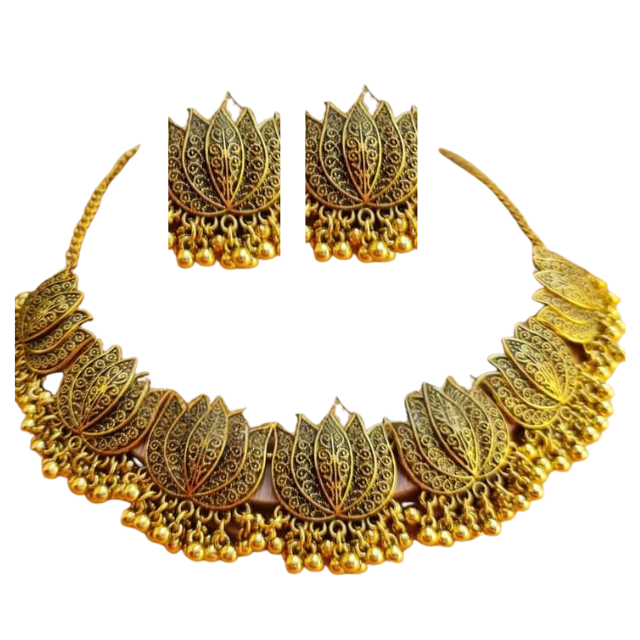 2024 Custom Design Antique Oxidized Necklace Earrings Afghani Tribal Lotus Flower Necklace Ear Rings Handmade Jewelry for Women