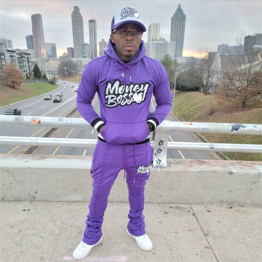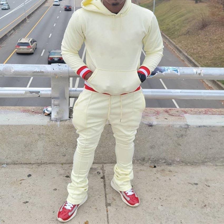 Custom Design Printed Embroidery Stacked Flare Flared Unisex 100% Cotton Breathable Eco-Friendly Joggers Sweatsuits Street Wear