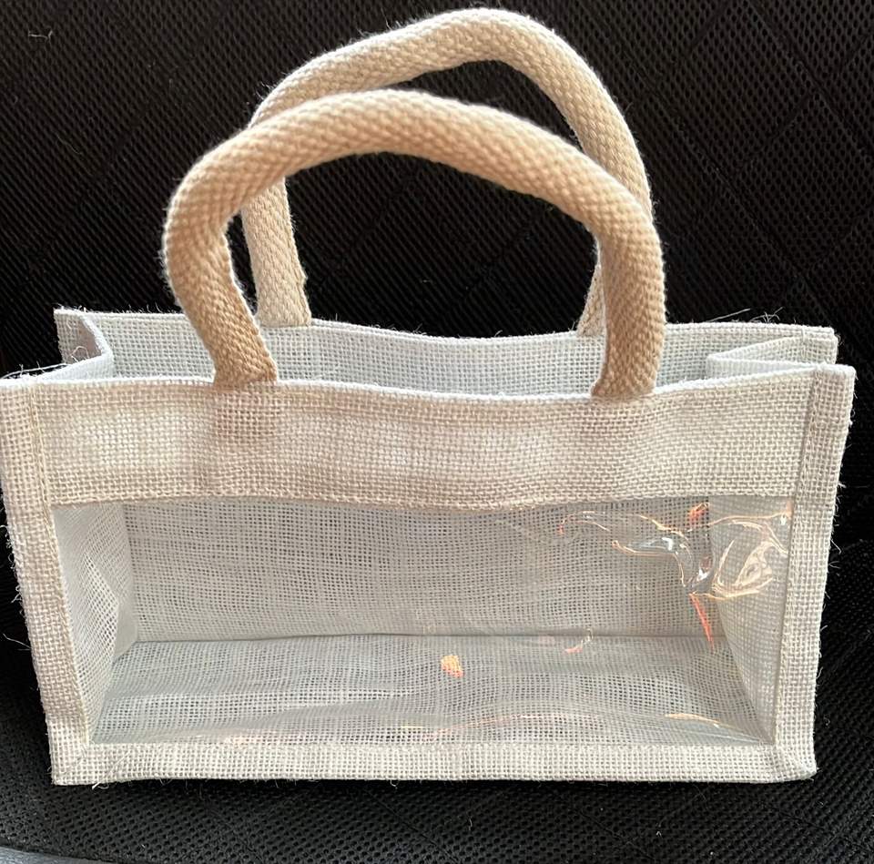 2024 Custom Logo Printed Eco Recycled Natural Foldable Reusable PVC window Hamper Jute Burlap Tote Jute Gifts Bag