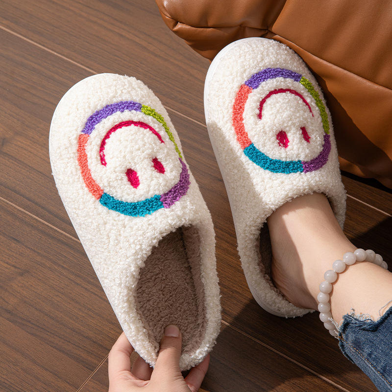 2024 Custom Printed Halloween Happy Smile Face Slippers Indoor Home Fuzzy Soft Plush Slippers for Women