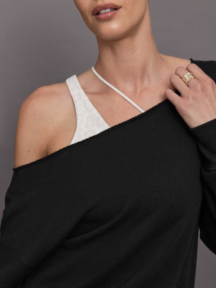 2024 Custom Sexy Breathable Off-Shoulder Cotton French Terry Plain Dyed Oversized Sweatshirt for Women for Autumn