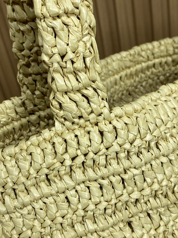 2024 Custom Summer Hand-Woven Material Straw Tote for Women Fashionable Hollow Out Beach Bag Zipper Closure Dual Handles