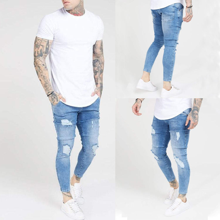 2024 Custom Wholesale Men's Tapered Jeans Pakistan Factory's Light Street Cotton Pant Mid Waist Plus Size Ripped Plain Design