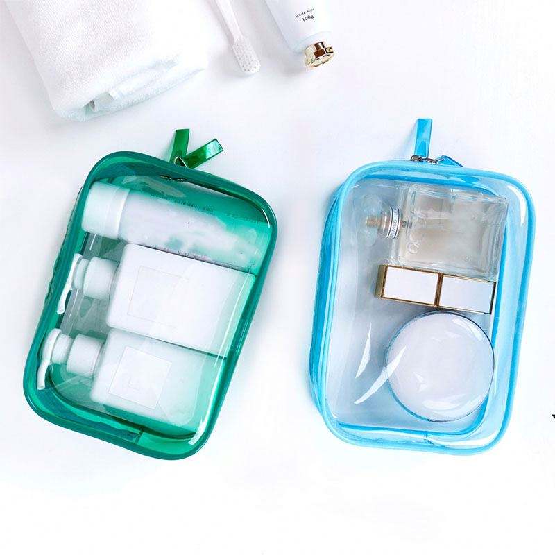 2024 Customize Clear PVC Transparent Travel Makeup Case Soft Handle Fashion Portable Cosmetic Organizer for Bag Zipper