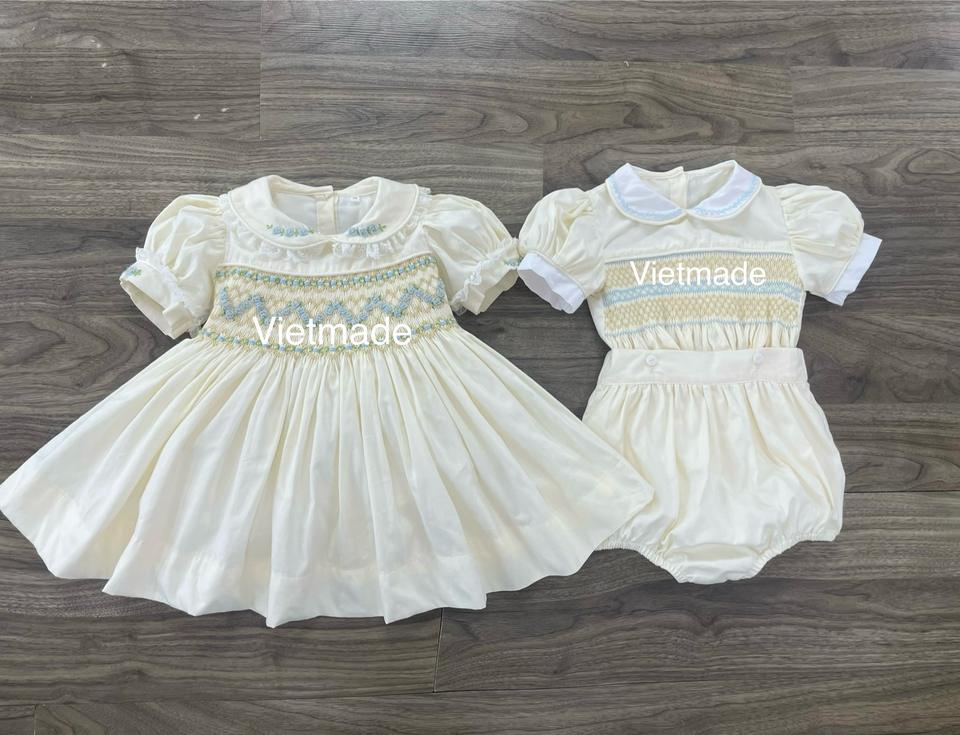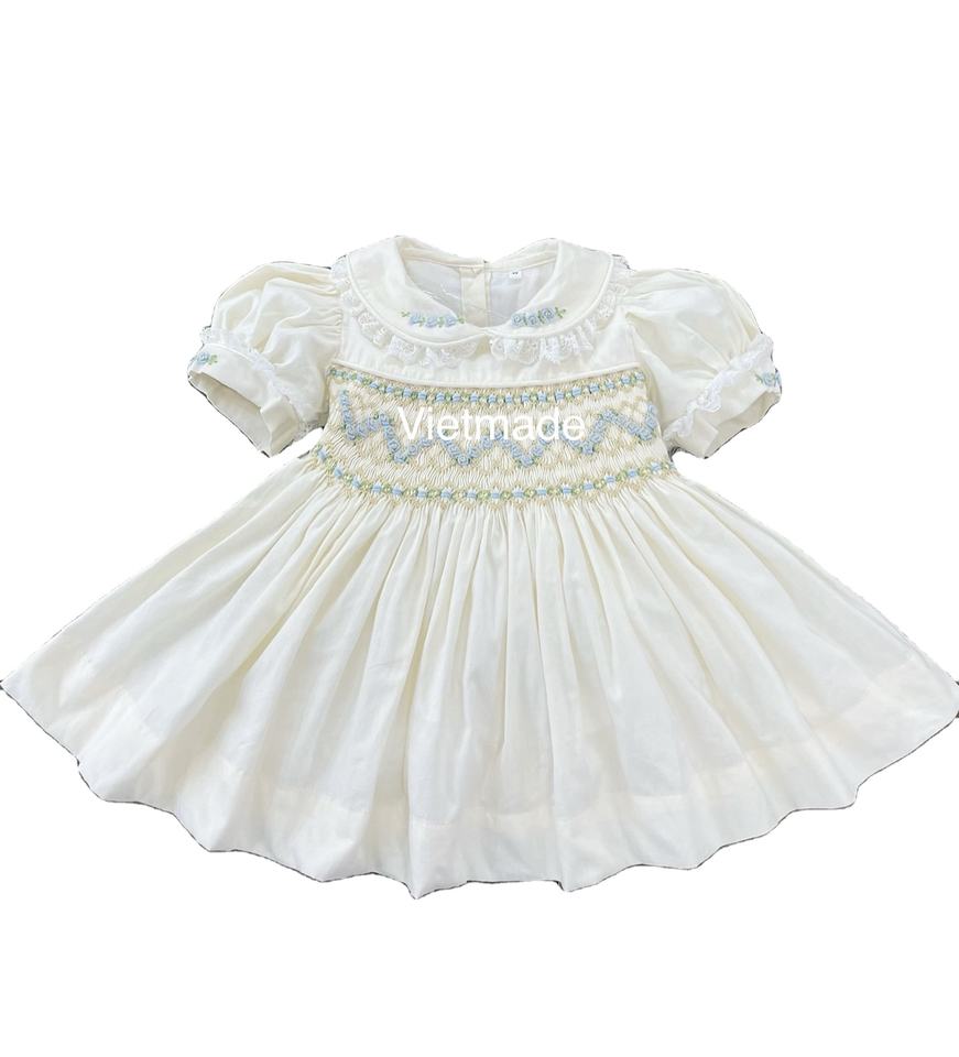 2024 Design Hand Made Smocked Kids Dress Boutique Yellow Smocking Clothes 100% Cotton Baby Girl Dresses ODM OEM Clothing