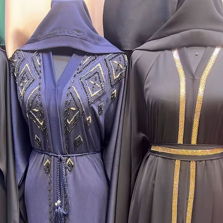 2024 Dubai Beautiful Black Traditional Islamic Clothing for Women Handwork Kaftan Abaya with Long Pants