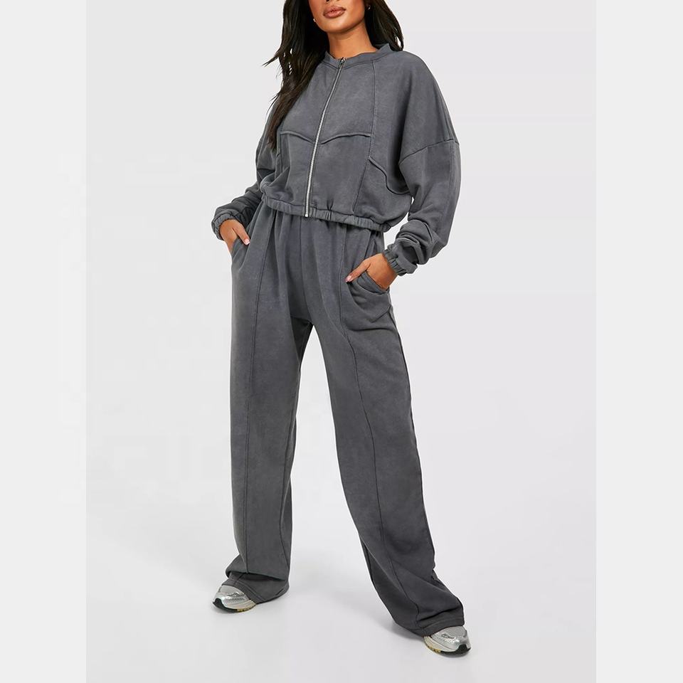2024 Factory Sale Stylish Cotton Spring 2 Pieces Acid Wash Hoodie Tracksuit Woman Sets Pakistan Made Women Winter Tracksuit