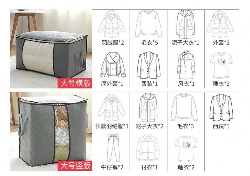 2024 Factory Storage Bag Cotton Quilt Storage Basket Fold Moving Packing Duffel Bag Wardrobe Clothing Storage Non-woven Fabric