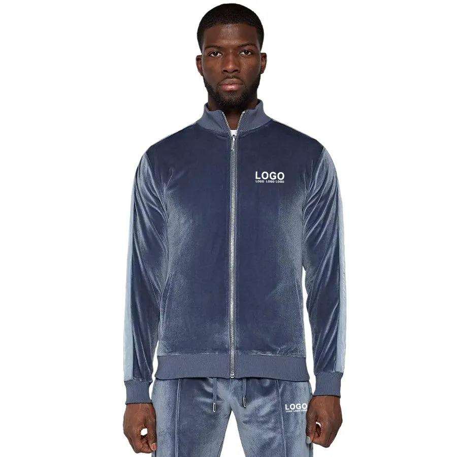 Custom Logo Winter Men's Maternity Velvet Vintage Two Piece Set Velour Tracksuits with Rhinestone Custom Color Wholesale 2022