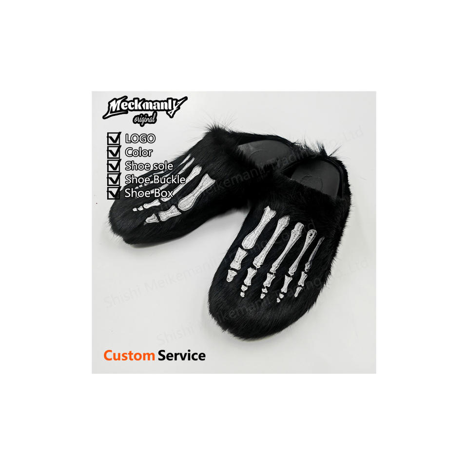 2024 Fashion Custom Men's Embroidered Plush House Platform Clog Shoes Casual Plush Clog Shoes for Men