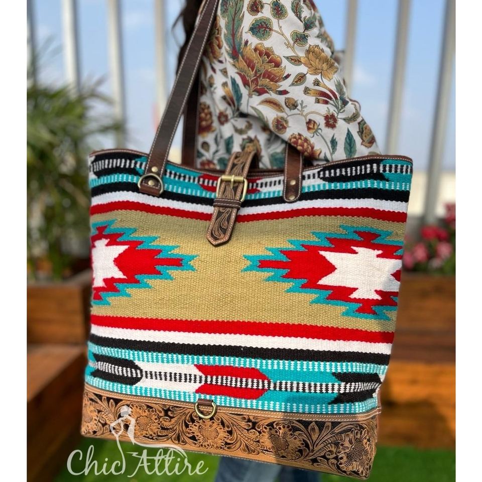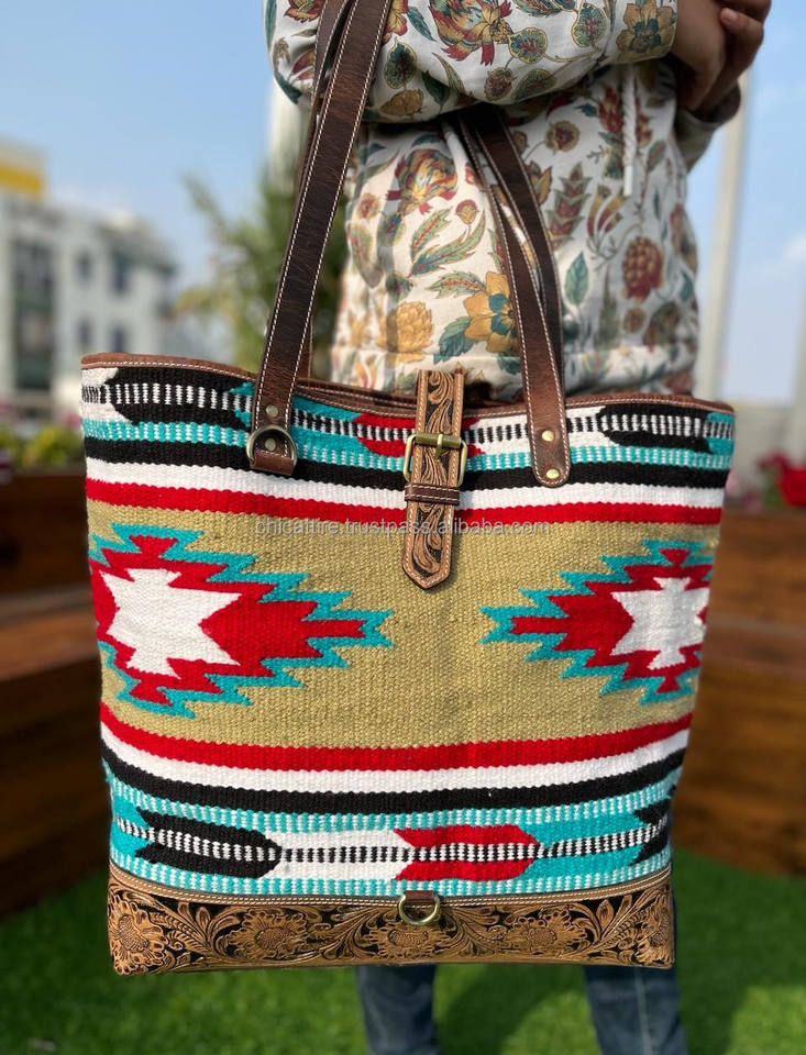 2024 Fashion Factory High Quality Hand Tooled Saddle Blanket Big Size Tote Bag for Women Hand Woven Genuine Leather Shoulder Bag