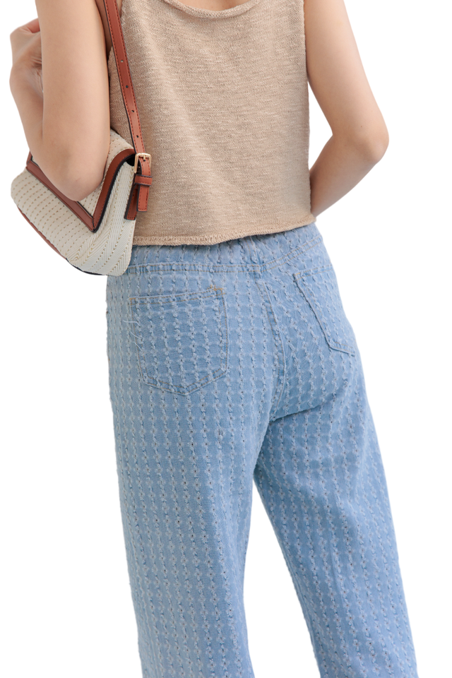 2024 Fashion Light Blue Breathable Streetwear Summer Sweet Mid Waist Straight Denim Jeans for Girls
