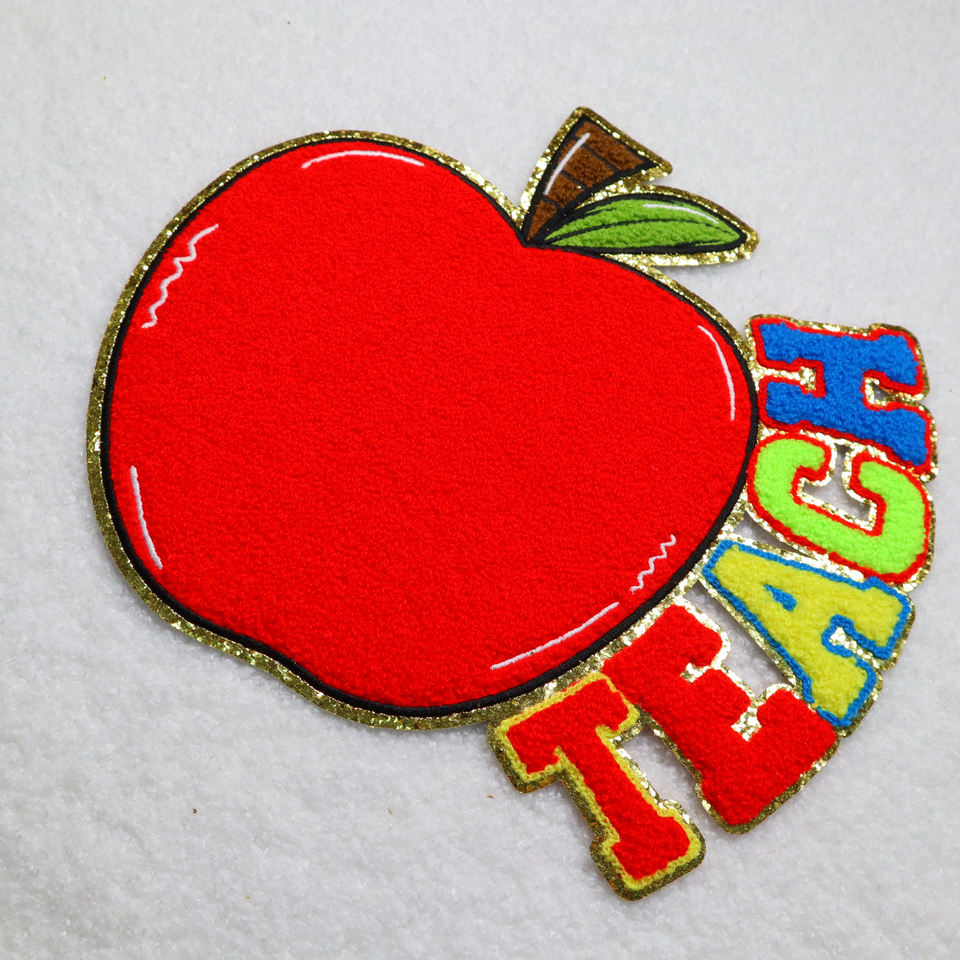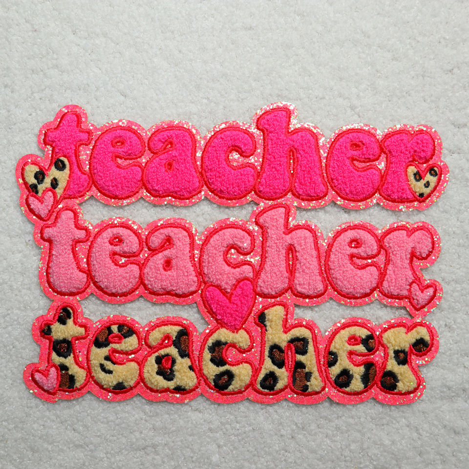 2025 Fashion Teacher Big Designer Patches Wholesale Custom Chenille Embroidery Press on Patches With Glitter