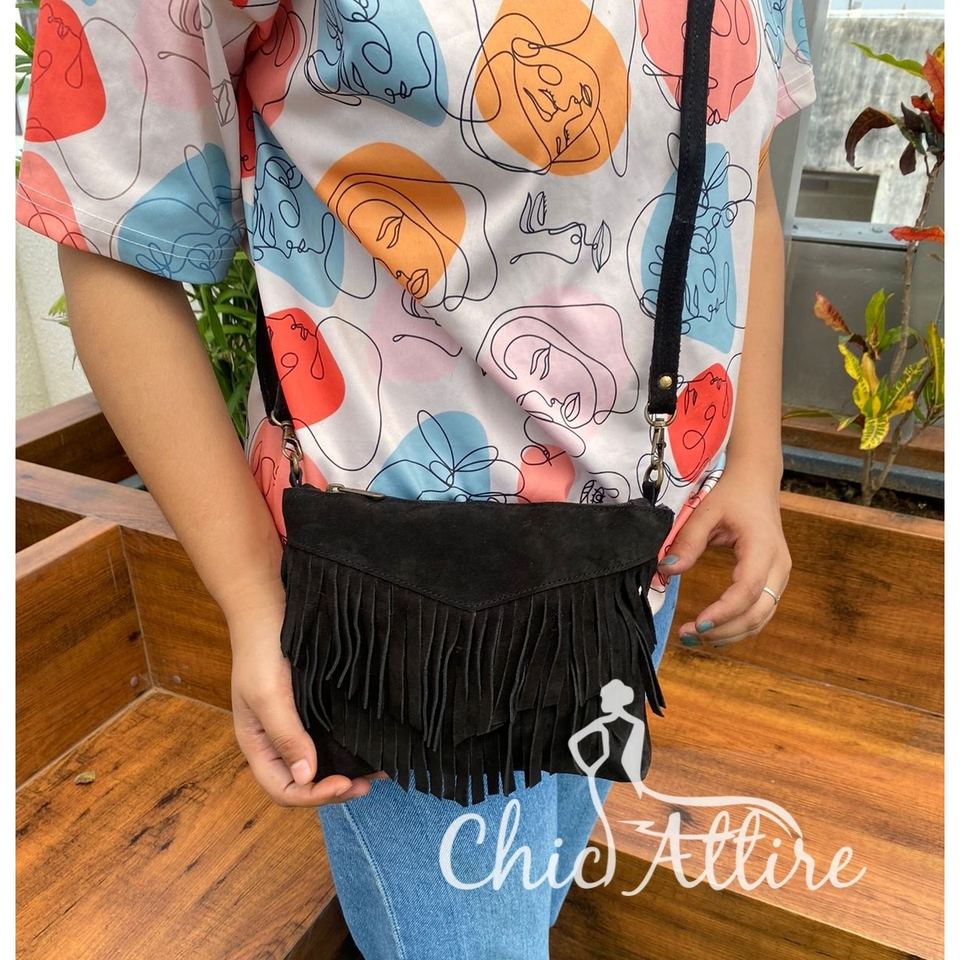 2024 Fashion Women's Sling Crossbody Bag Ladies High Quality Suede Leather Fringe Small Shoulder Bag Ladies Tassel Handbag Purse