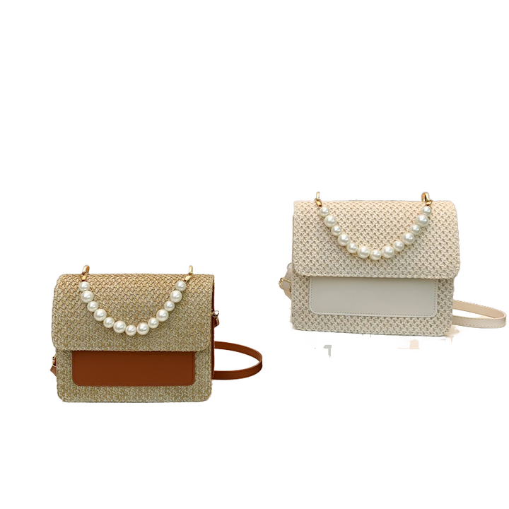 2024 Straw Woven Tote Bag Womens Spring Pearl Small Square Bag