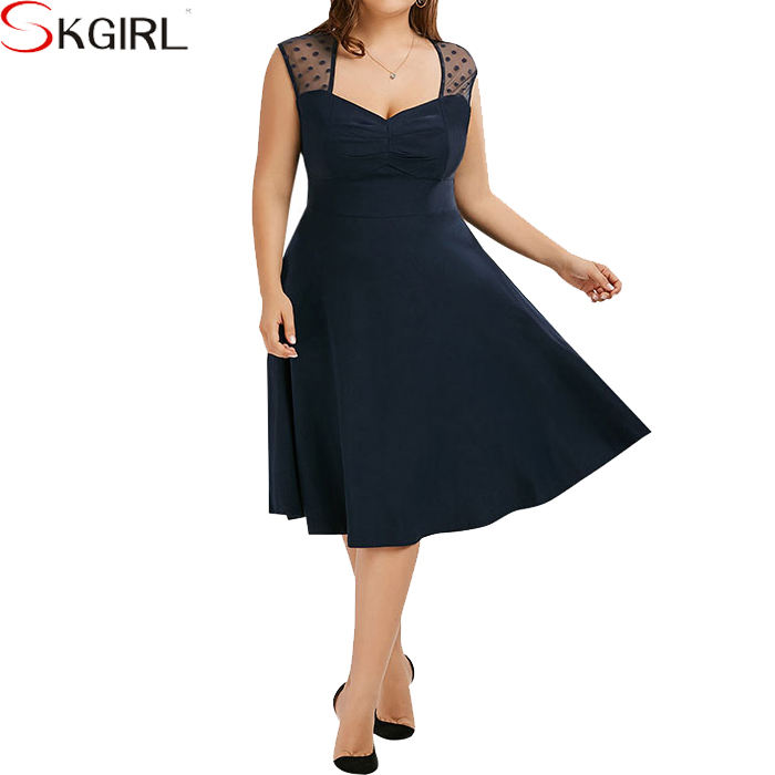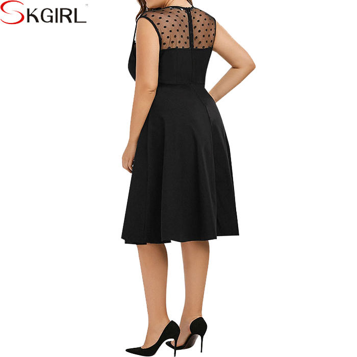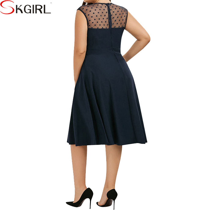2024 Fat Women's Party Wear Polka Dot Knee Length Plus Size 1950s Vintage Rockabilly Retro Swing Dress