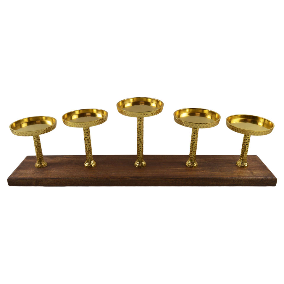 2024 Fresh Arrival Golden Tealight Holder Exclusive Design Home Table Accents Decorative Candle Stand Wooden Base for Christmas