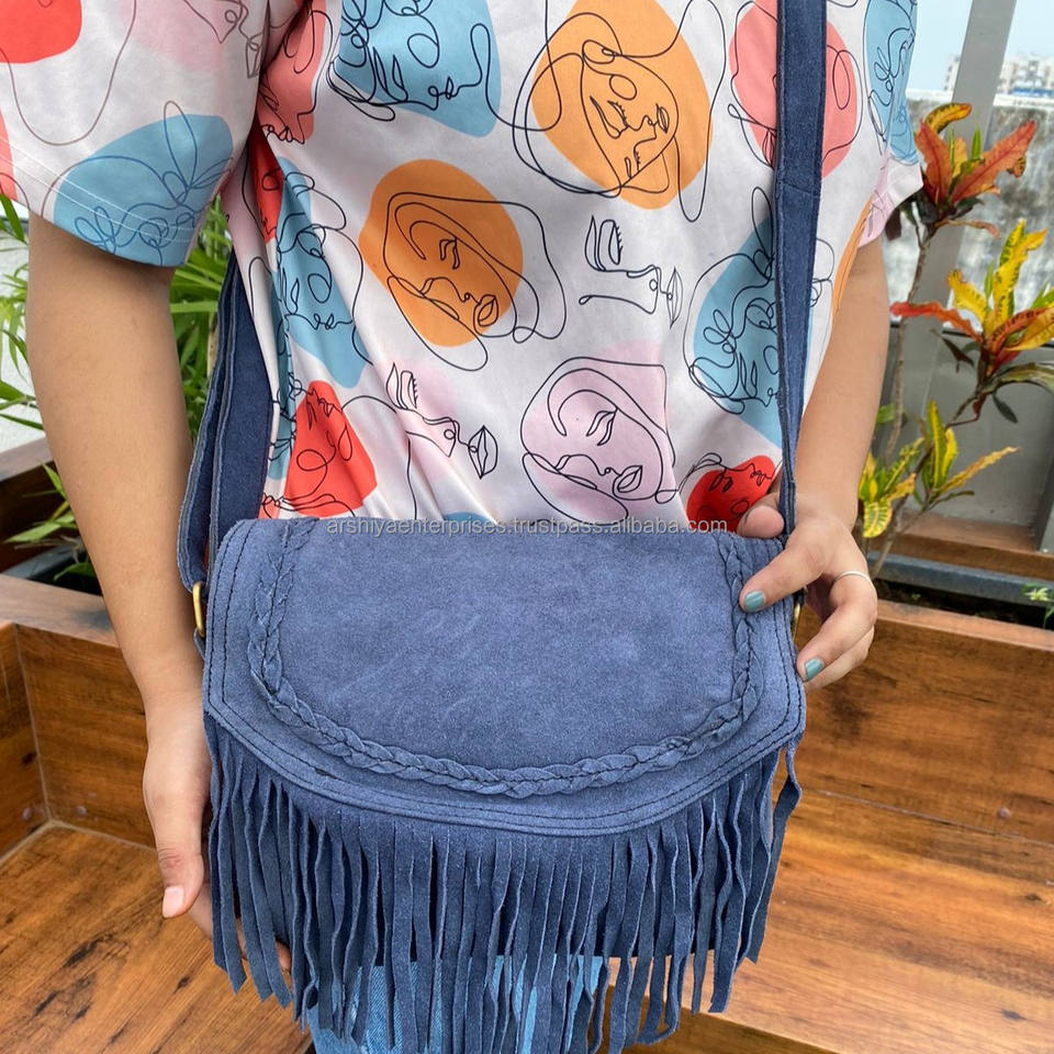 2024 Genuine Suede Leather Hobo Fringe Bag Custom High End Designer Large Purple Cow Leather Luxury Purse for Women Handbags