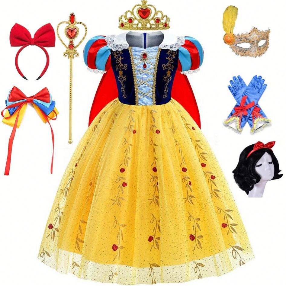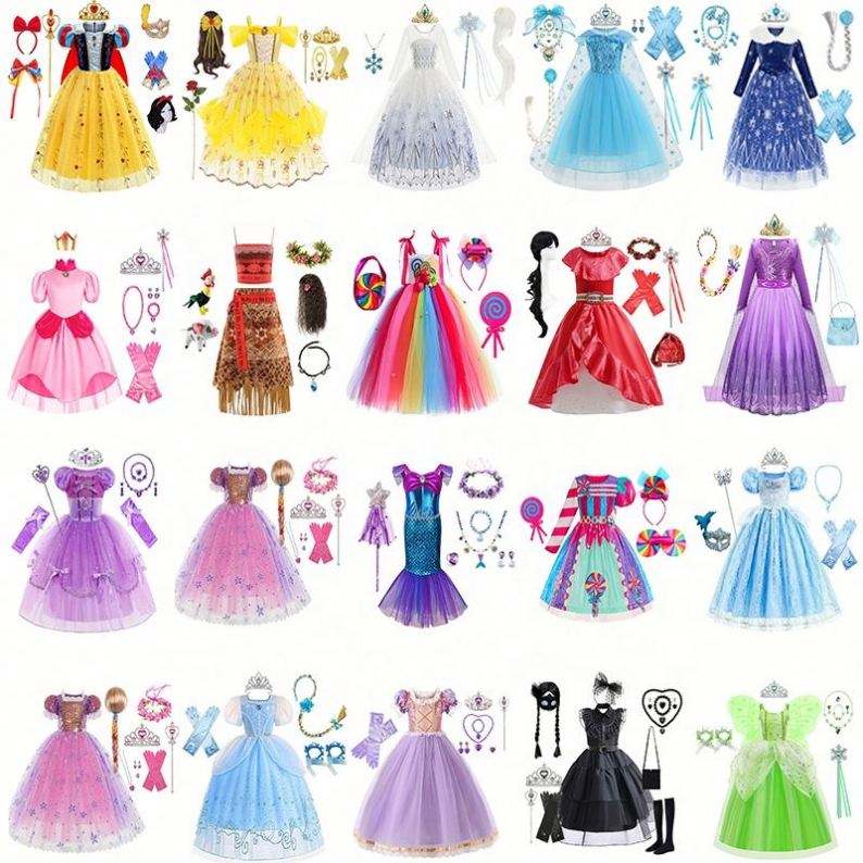 2024 Girls' Elsa Anna Snow Belle Princess Dress Costume Cosplay for Halloween Birthday Party 2pcs Polyester with Opp Bag