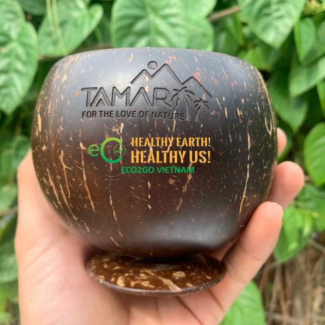 2025! HOT SALE ORGANIC NEW COCONUT SHELL CUP WITH LID/ COCONUT CUP and SPOON CHEAPEST PRICE FROM ECO2GO VIETNAM