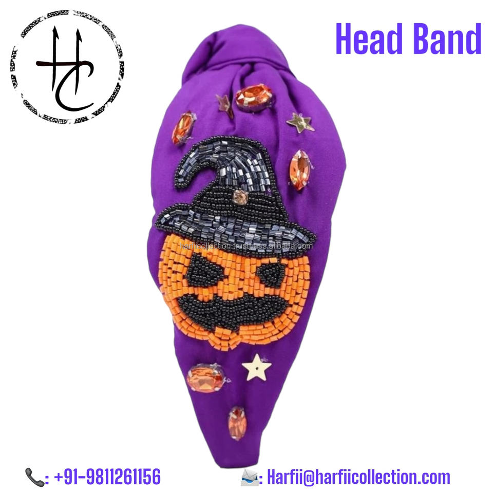 2025 Halloween Beaded Headband for Women Premium Polyester Fabric Hairband with Pearl Rhinestone Details Trendy Holiday