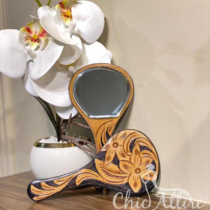 Exquisite Tooled Leather Elegant Handheld Mirror