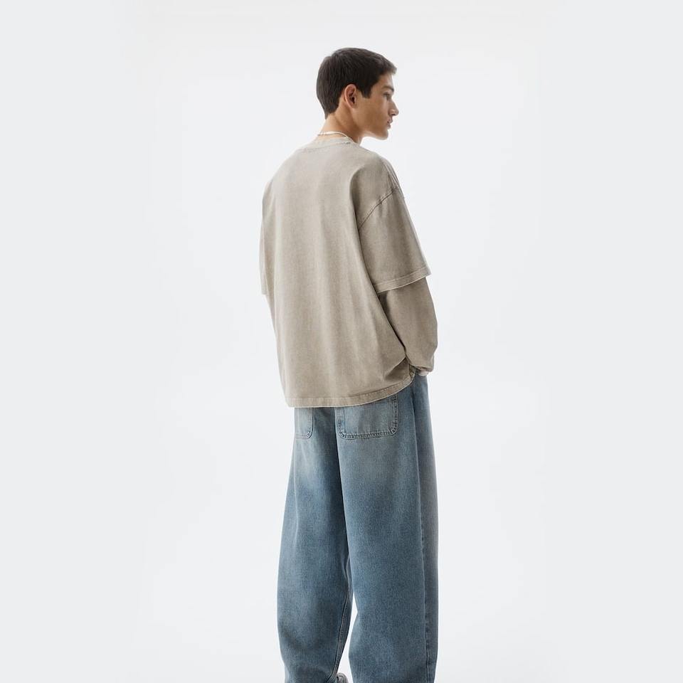 2024 Heavyweight Custom Logo Blank Men Double Layer Full Sleeve T Shirts Men Double Sleeve Hip Hop T Shirts in Cheap Rates