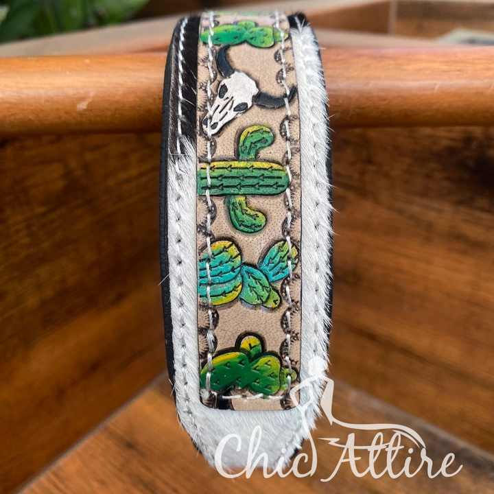 2024 High Quality Adjustable Handmade Tooled Leather Pet Collars Heavy Duty Genuine Hair on Cowhide Leather Padded Puppy Collars
