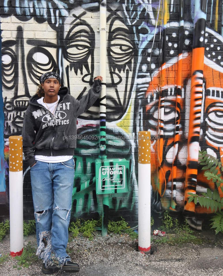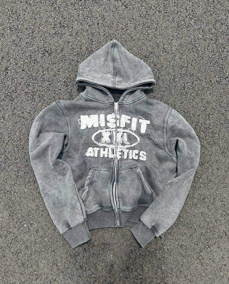 2024 High Quality Custom Heavy 100% Cotton Vintage Distressed Patch Applique Embroidery Zip up Hoodie