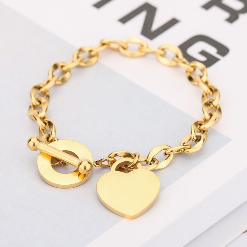 2024 High Quality Trendy New Design Custom Silver Color Gold Plated Stainless Steel Heart Bracelet for Unisex Gift