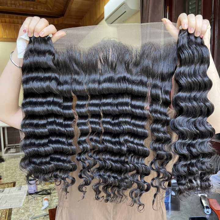 2024 Hot High Quality Long Deep Wave Bundle Vietnamese Human Hair Double Weft Training Heads for Black Women Vendors