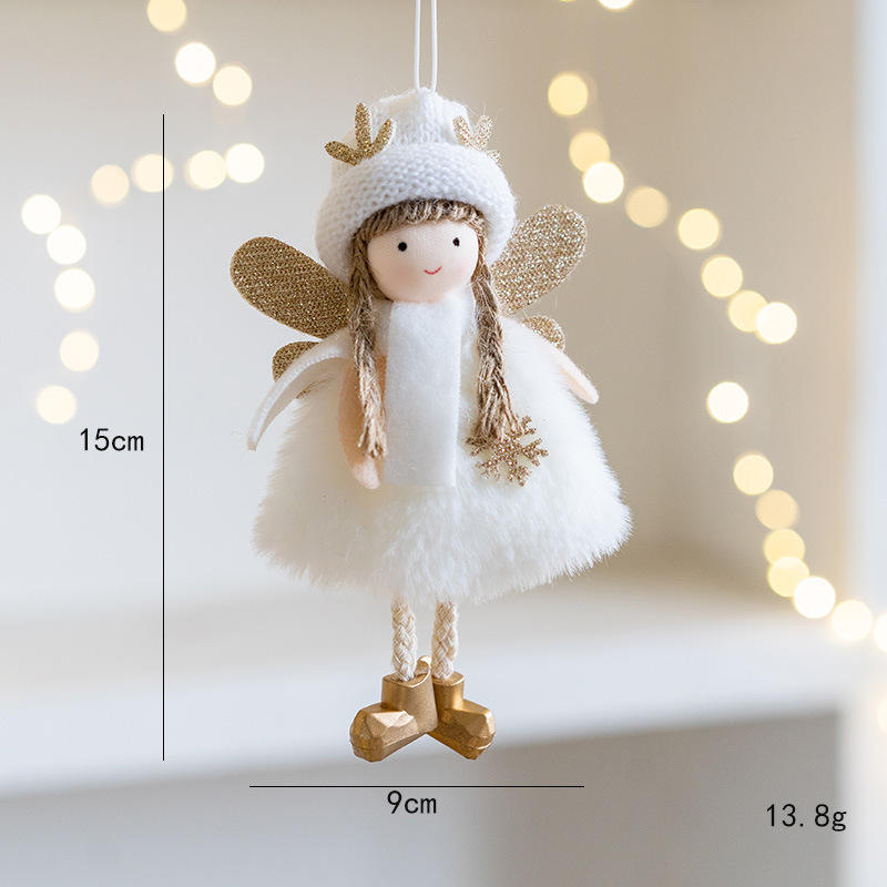 2024 Hot Sale Plush 15cm Ornaments for Christmas Tree Hanging Decorations Girl Angel Design Kids Gift