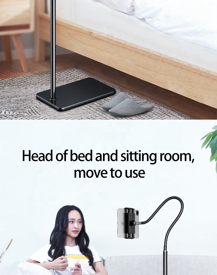 2024 Hot Selling Flexible Aluminum Mobile Stand for Phone & Tablet Stable Folding Indoor Floor Stand for Home & Bed Use