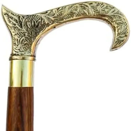 2024 Hot Selling Vintage Wooden Walking Stick With Decorative Brass Handle Designer Black Wood Cane 36"Old Men & Women Walking S