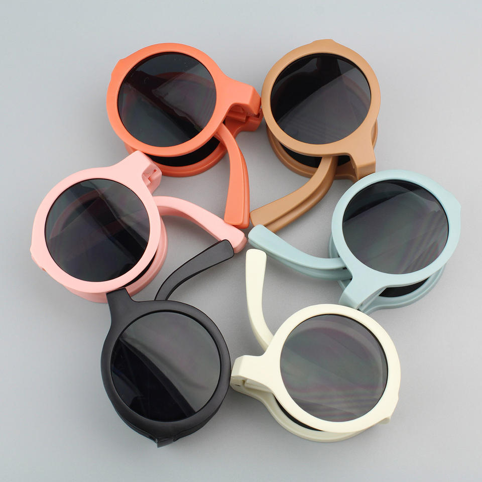 2024 UV400 Kids Sunglasses New Fashionable Foldable PC Eyewear for Boys and Girls Bulk Folding with Purple & Blue Lenses