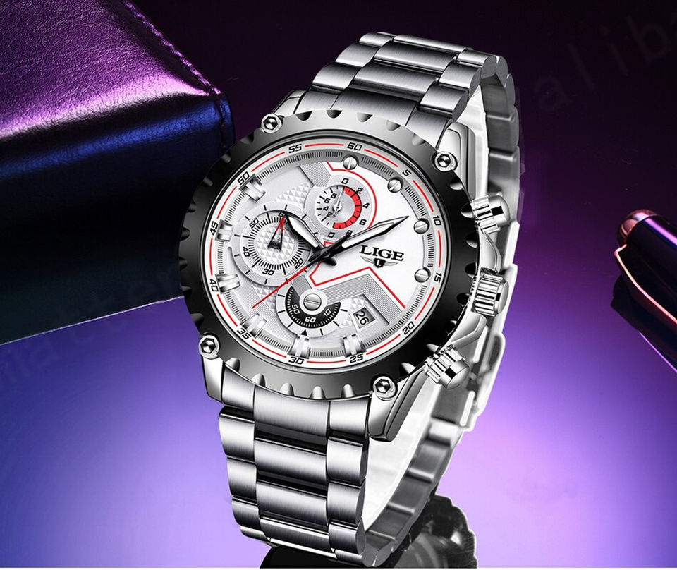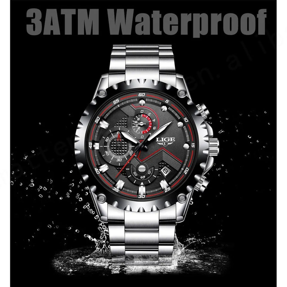 2024 LIGE Fashion Silver Mens Watch Men Quartz Clock Business Watch Chronograph Top Brand Luxury Full Steel 30M Waterproof Watch