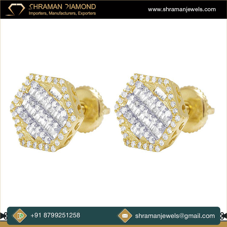 Custom 10K Gold Plated Hexagon Baguette Cut Lab Grown Diamond Stud Earrings for Women Children's-Trendy Birthday Engagement Gift