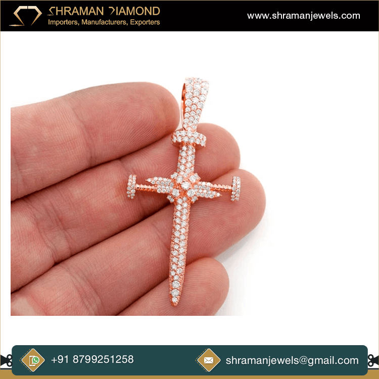 2024 Latest Arrival Modern Design Fashion Jewelry 2.5 TCW 14K Gold Nail CROSS Lab Grown Diamond Pendant at Competitive Price