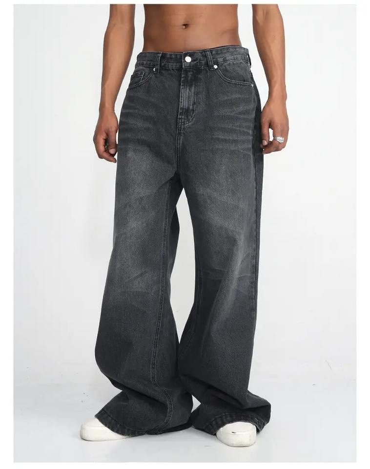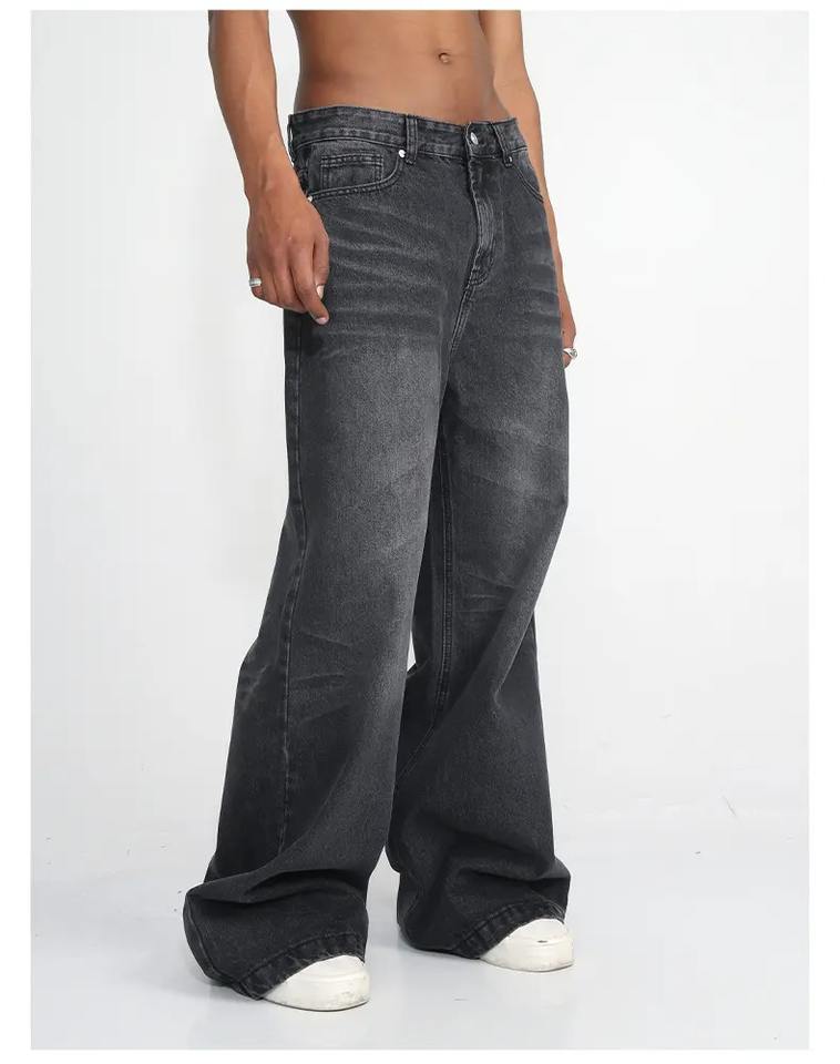 2024 Loose Fit Jeans Acid Washed Jeans Pants for Men Black Denim Cotton Heavyweight Custom Embroidery Denim Jeans
