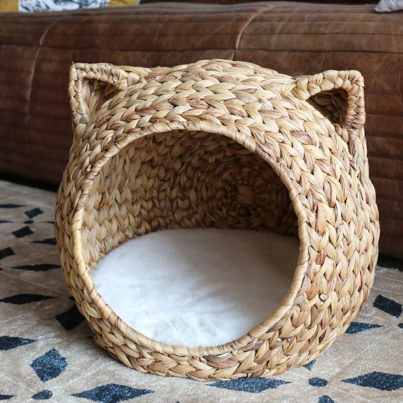 2024 Lovely Straw Cat House Water Hyacinth Pet Bed Dog House Four Seasons Universal Removable and Washable