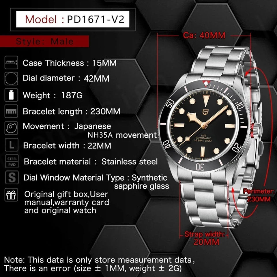 2024 Luxury BENYAR 1671 Fashion Business Sport Men's Stainless Steel Quartz Watch Waterproof Pointer Dial