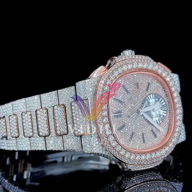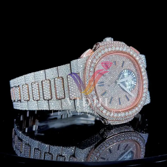 2024 Luxury Customizable GIA Certified Diamond VVS Automatic Men's Watch Full White Gold Case Pointer Dial STP Mechanical 10 Bar