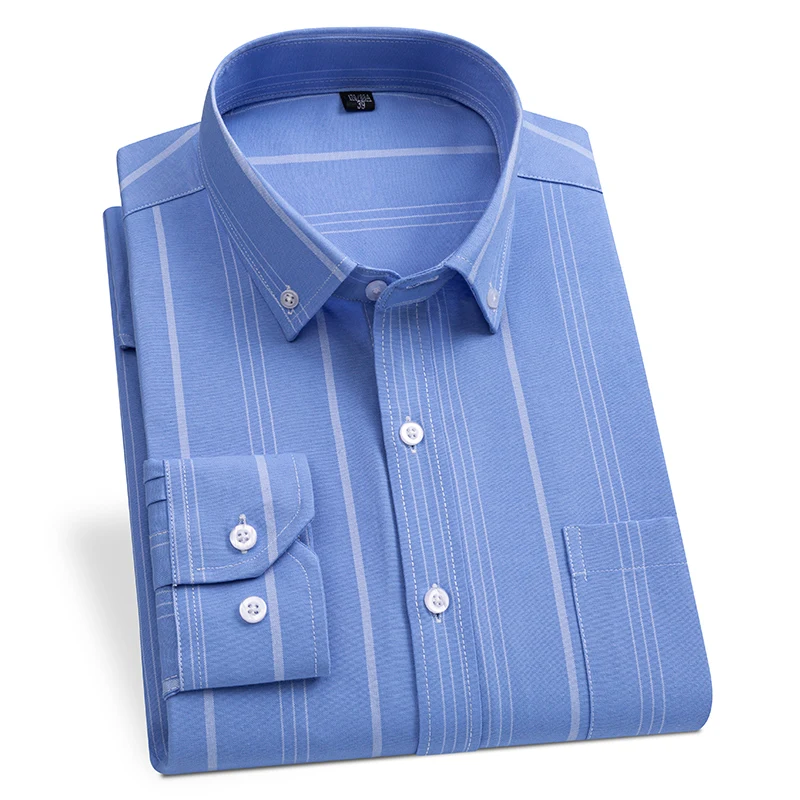 2024 Men's Long-Sleeve Slim Fit Formal Shirts Plain Striped Plaid with Single Pocket Sizes 9 and 38 Tops Clothes