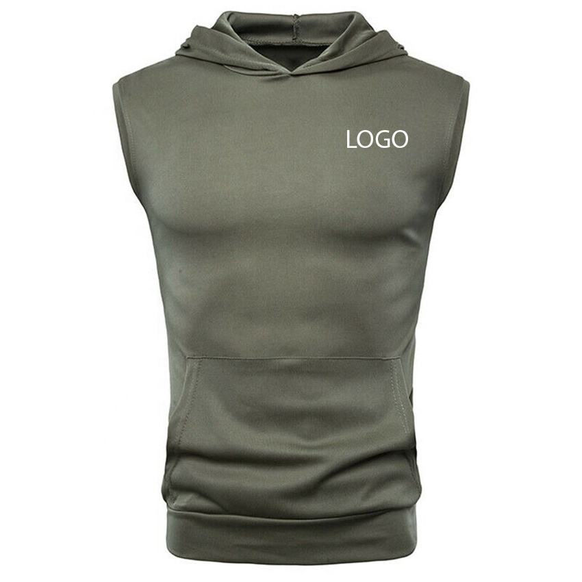 2024 Men's Muscle Fit Athletic Pullover Hoodie Sleeveless Cotton Gym Workout Tank Top