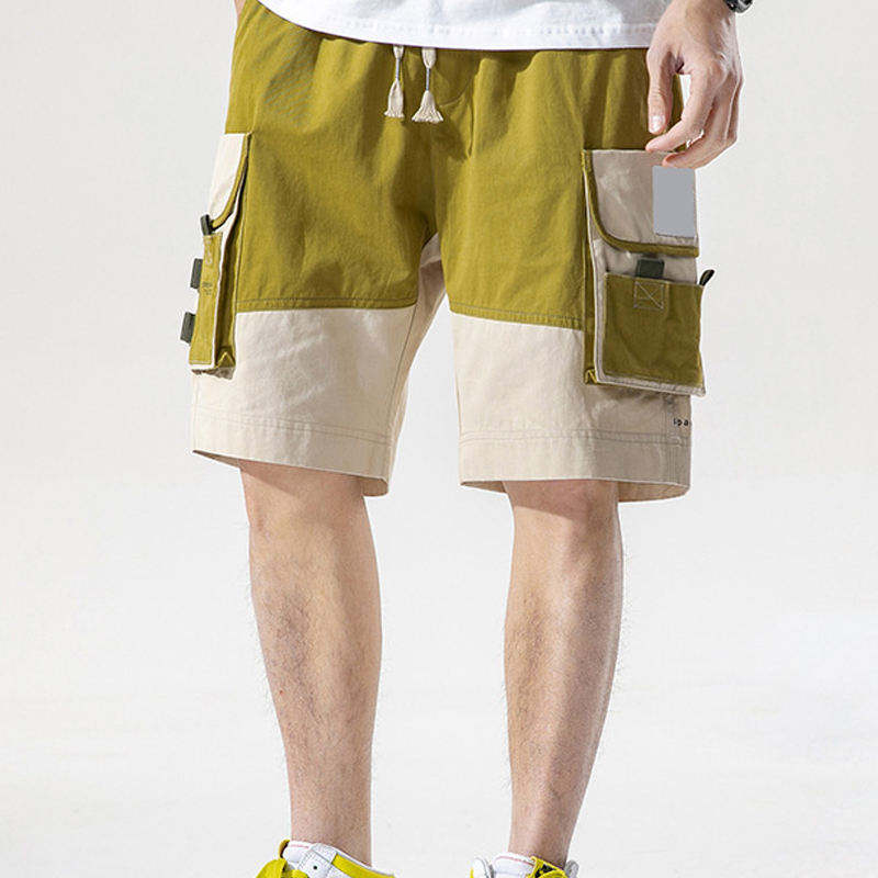 2024 Men's Summer Casual Cotton Cargo Shorts High Street Fashion Embroidered Lace Decoration Multi-pocket Loose Fit Solid